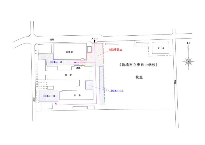 送迎の際、管理棟の駐車場は利用禁止としますので、北東の一般駐車場をご利用下さい。